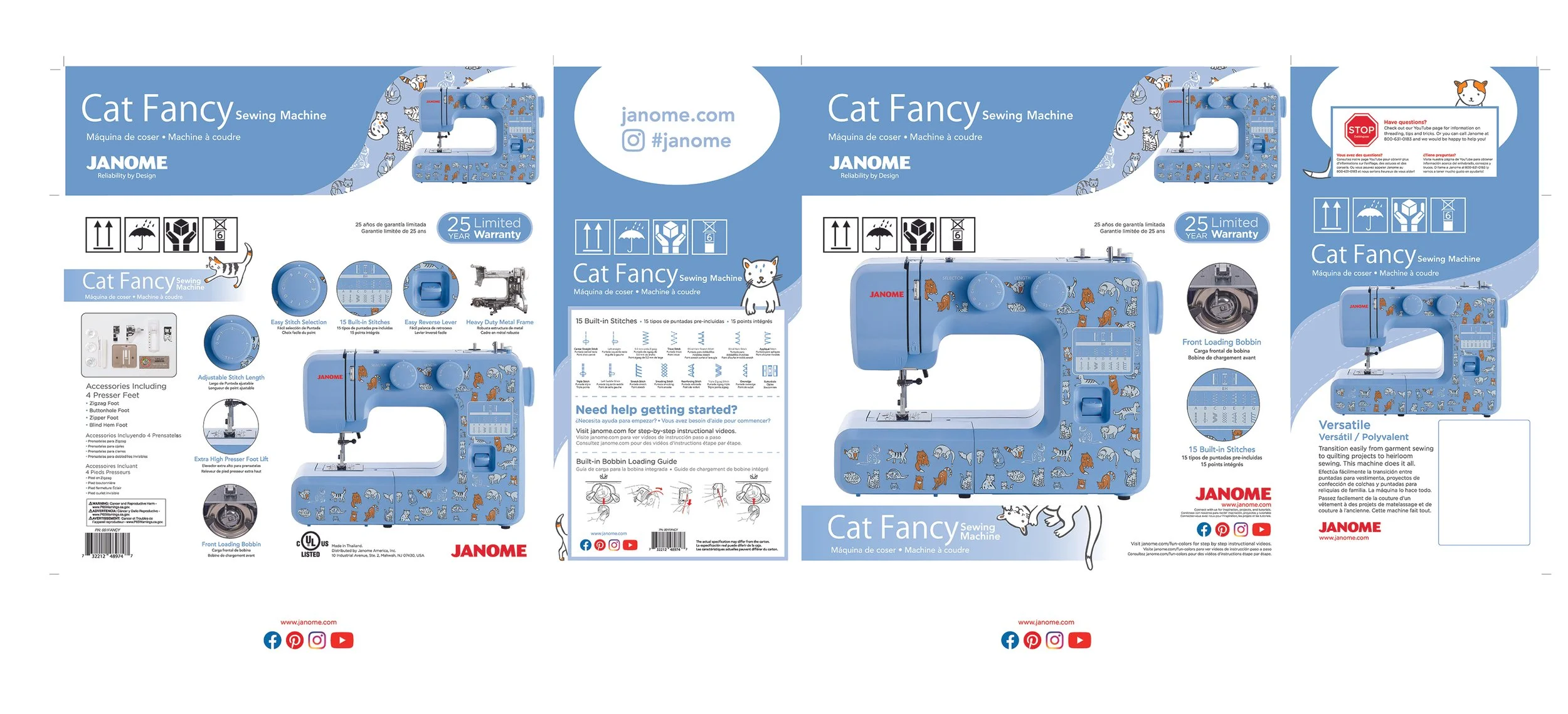 Collaboration with marketing managers, sales, education, and merchandising teams supported the development of concepts and the execution of designs that aligned with strategic objectives and met project deadlines. The Cat Fancy sewing machine and its matching packaging were created for the Mass Merchandising Department, with screen-printed artwork and eye-catching packaging developed in partnership with the Head of Mass Merchandising and Marketing. This project represented the company’s first in-house specialty-designed machine in several years and contributed to notable incremental sales growth.